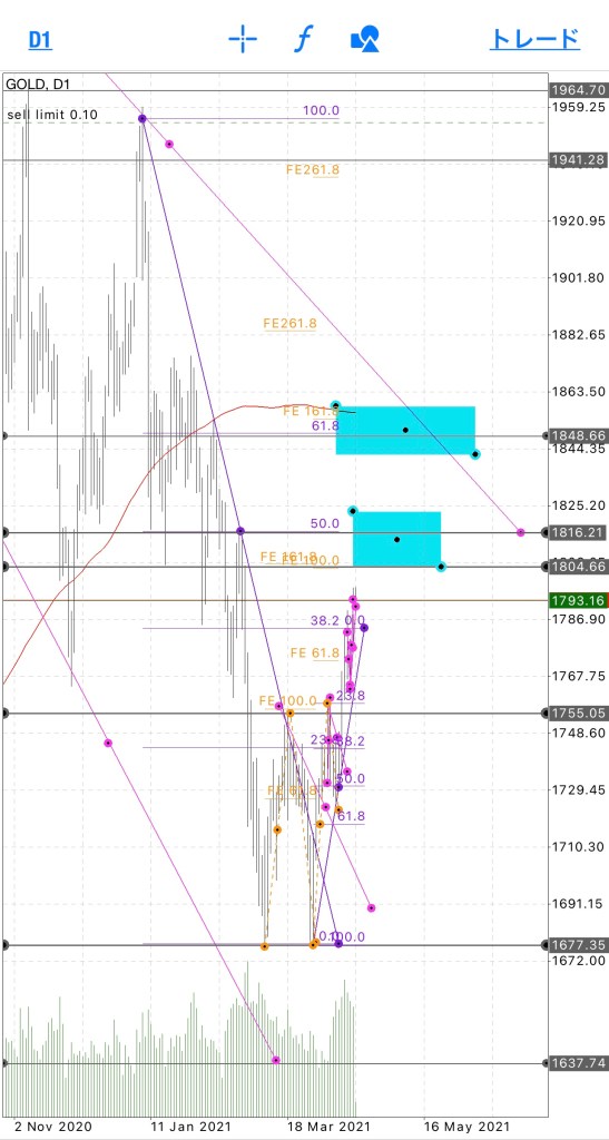 フィボエクスパンションの161.8あたりでもショートエントリーしたいとこ。