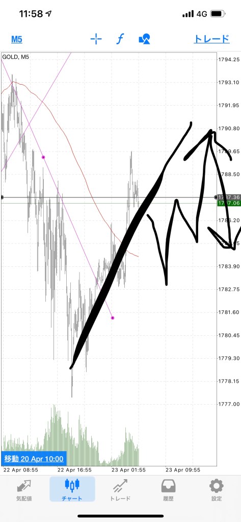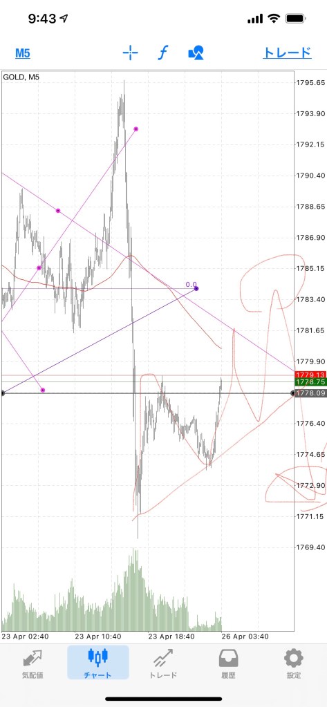 ゴールドは基本15分5分1分足だけどポイントを取りづらかったから日足で😂