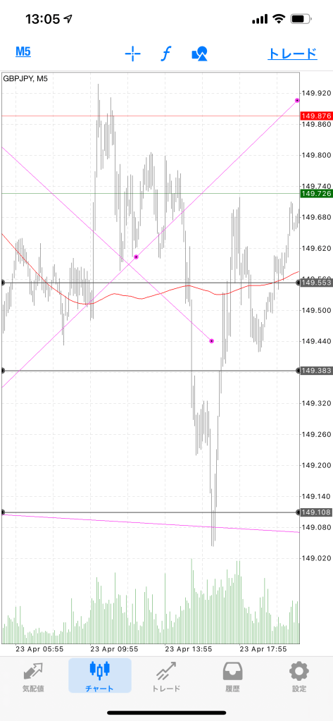 5分足の広い目線で見てチャネル組めそう。
